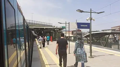 Tersane railway station (Turkish: Tersane istasyonu) is a railway station in Pendik, Istanbul, on the Marmaray line. Up until 2012, the station was a stop on the Haydarpaşa suburban commuter rail line.[1] The original station consisted of two side platforms with two tracks. The station gets its name from the nearby Pendik Shipyards, as Tersane is Turkish for shipyard.