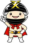 Teshio's mascot is Teshio Kamen (てしお仮面) who is a superhero basket clam. He is given a "te" (天)-shaped badge to symbolize his honor by people especially children and the elderly. He uses his index finger to send signals.[6]
