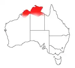 | Map showing the estimated current distribution of T. mellipes in Australia | |