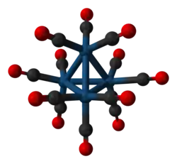 Tetrairidium dodecacarbonyl is the chemical compound with the formula Ir4(CO)12. This tetrahedral cluster is the most common and most stable "binary" carbonyl of iridium. This air-stable species is only poorly soluble in organic solvents.[1][2][3] It has been used to prepare bimetallic clusters and catalysts, e.g. for the water gas shift reaction, and reforming, but these studies are of purely academic interest.