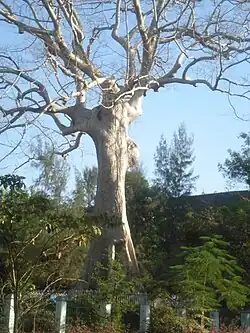 In India, these trees can be found in particularly large numbers in the Thattekad Bird Sanctuary, Kerala. In Myanmar, an old, around 60 m (200 ft) specimen can be found in the University of Yangon campus (illustrated). In Vietnam, where the species is called tung or thung, a number of fine specimens are shown to visitors in Cat Tien National Park – one within walking distance of the park headquarters.