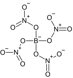 - ^ a b c d e f Guibert, C. R.; M. D. Marshall (1966). "Synthesis of the Tetranitratoborate Anion". Journal of the American Chemical Society. 88 (1): 189–190. Bibcode:1966JAChS..88..189G. doi:10.1021/ja00953a051. ISSN 0002-7863.
