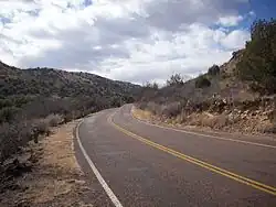 The road begins at PR 3 and crosses Keesey Creek before turning east in Keesey Canyon. Like PR 3, the road also has connecting drives acting as loops and cul-de-sacs to campgrounds and park facilities. After leaving the campground, the road begins steeply ascending the ridge between Keesey and Hospital canyons on a climb requiring several switchbacks.[10] The road connects with drives to scenic overlooks, picnic tables, and trail heads before terminating after 2.8 miles (4.5 km) at a scenic overlook and trail head at the boundary between the park and Fort Davis National Historic Site.[3][4]