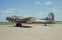 Texas Raiders returned to flight on October 14, 2009, and was featured at Wings Over Houston that month as a static display.[3] In March 2010, the plane was moved to the Tomball Jet Center in David Wayne Hooks Memorial Airport (KDWH) in Tomball, Texas.[7] Texas Raiders rejoined the air show circuit in 2010, just in time to commemorate the 75th anniversary of the first flight of the B-17. It traveled to the EAA AirVenture Oshkosh airshow, where it was featured in AeroShell Square.[8][9] That summer, the plane appeared at Thunder Over Michigan as one of eight restored B-17s, flying in formation with Yankee Lady, movie Memphis Belle, Nine-O-Nine, Aluminum Overcast, Liberty Belle, Thunderbird, and Sentimental Journey.[3]