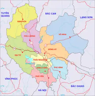 | Administrative divisions of Thái Nguyên | |||||||||||||||||||||||||||||||||||||||||