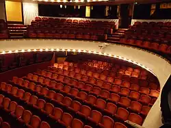 On the site of the Hotel de Lorge, sold in lots, the rue de la Michodiere opened in 1778. Around the place where the Gaillon gate stood at the enclosure of Louis XIII, in 1925, the architect Auguste Bluysen built a theatre in the Art Deco style. Decorated by Jacques-Émile Ruhlmann, the red and gold auditorium could accommodate 800 spectators, but in the 21st century, it has only 700 seats left.[1]