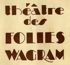 - ^ a b s.n. (3 March 1928) "Une surprise au pays du music-hall: l'inauguration imminente des Folies-Wagram". Comœdia, p. 3. Retrieved 28 June 2018 (in French).