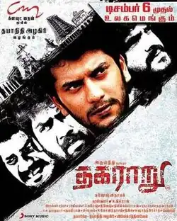 Thagaraaru (transl. Argument) is a 2013 Indian Tamil action mystery drama film written and directed by newcomer Ganesh Vinaayac and produced by Cloud Nine Movies.[1][2] The film stars Arulnithi and Poorna in the lead roles while Jayaprakash, Pawan, Sulile Kumar, and Aadukalam Murugadoss appear in supporting roles. The soundtrack was composed by Dharan, while Praveen Sathya composed the score.[3] Dillraj was the cinematographer, and T. S. Suresh edited the film. The film released on 6 December 2013 and received mixed reviews from critics. Due to the popularity of Madurai Backdrop, The film received generally positive reviews and become an above average hit at the box office.[4]