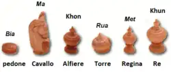 | Thai | ขุน | เม็ด | โคน | ม้า | เรือ | เบี้ย | เบี้ยหงาย |