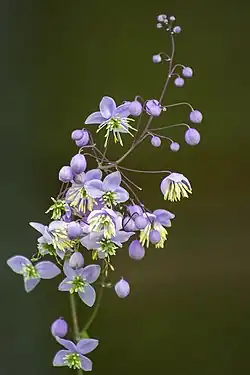 Thalictrum rochebruneanum, called the lavender mist meadow rue, is a species of flowering plant in the genus Thalictrum, native to the Korean Peninsula and Japan.[2] A clumping perennial topped with a loose spray of small medium violet flowers with yellow stamens, and sometimes reaching 2 m (7 ft), it has gained the Royal Horticultural Society's Award of Garden Merit.[3]