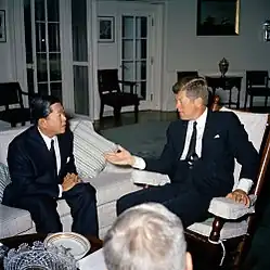 On 10 February 1959, he was appointed Minister of Foreign Affairs of Thailand in the government of authoritarian Prime Minister Sarit Thanarat. His major contribution was in promoting regional reconciliation and cooperation in Southeast Asia. He was a participant in SEATO talks in 1961.[10] In March 1962 he signed a joint communiqué with United States Secretary of State Dean Rusk in which the United States promised Thailand support and defense against potential communist aggression. Despite being only an informal protocol, it was celebrated in Thailand as a bilateral pact of the two countries, dubbed the Thanat–Rusk Communiqué.[11][12]