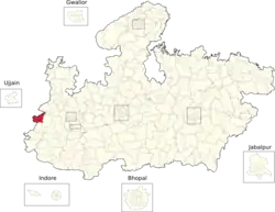 Thandla is one of the 230 Vidhan Sabha (Legislative Assembly) constituencies of Madhya Pradesh state in central India. Thandla Assembly constituency is one of the three Assembly constituencies in Jhabua district.[1][2][3] It comprises Thandla and Meghnagar tehsils, both in Jhabua district.[4]