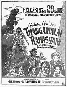 Thangamalai Ragasiyam (transl. Secret of the Golden mountain) is a 1957 Indian Tamil-language adventure film produced and directed by B. R. Panthulu.[1] The film stars Sivaji Ganesan, T. R. Rajakumari and Jamuna. It was simultaneously made in Kannada as Rathnagiri Rahasya. The film was released on 29 June 1957 and emerged a success.