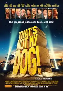 That's Not My Dog! is a 2018 Australian comedy film written and directed by Dean Murphy and starring Shane Jacobson.[1] Each of the cast members in the film are portraying themselves. The film had a limited cinematic release from 15–18 March 2018,[2] which was extended due to popular demand from audiences.[3]