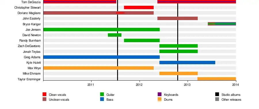 - Tom DeGrazia – clean vocals, keyboards (2010–2011, 2012–2014)