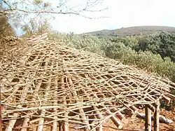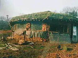 Constructed without planning permission during the winter of 1997/1998 as part of the secret Brithdir Mawr project, That Roundhouse was discovered by the authorities from the air in 1998.[3] Wrench applied for planning permission which was turned down and a 10-year legal battle ensued, which included appearances in magistrates' court, the County Court, the Crown Court, fines, threats of injunctions and a public inquiry. At one point they announced that they were going to comply with the court and 'deconstruct' the building, however on the day the deconstruction was due to start a well-organised protest was arranged by supporters who threatened to squat the roundhouse to delay its destruction further. During this whole process the National Park was also developing a new more sympathetic policy towards Low Impact development to which Wrenches were providing evidence. Every move in the process led to renewed interest from the media who were generally more sympathetic with the Wrenches than with the authority especially where the chair of the planning authority received planning permission for a large new building within sight of a land around the roundhouse.[4] In the end the enforcement of the court's original decision was delayed long enough for the park guidance to be approved and finally for the roundhouse to be given planning approval.