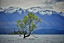 That Wānaka Tree, also known as the That Wānaka Willow, is the nickname of a willow tree located at the southern end of Lake Wānaka in the Otago region of New Zealand. The tree grows alone in the water and is a popular destination for tourists to take Instagram photos. It was planted by Tim Scur as a fence post and unexpectedly grew. The Wānaka Tree can be seen on postcards and in paintings across the world especially in relation to New Zealand.