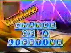 The $1,000,000 Chance of a Lifetime is an American game show which offered a $1 million (annuitized) grand prize to winning contestants. The show aired in syndication from January 6, 1986, until May 22, 1987. The show was hosted by Jim Lange, and he was joined by Karen Thomas as co-host during the second season. Mark Summers was the show's announcer for the first few weeks and Johnny Gilbert announced the remainder of the series. The show was produced by XPTLA, Inc., and distributed by Lorimar-Telepictures.
