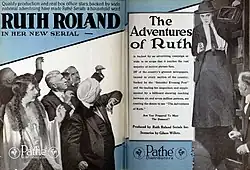 The Adventures of Ruth is a 1919 American film serial directed by George Marshall. It is now considered to be a lost film.[1] The serial was advertised as written, produced and directed by Ruth Roland. Roland was the producer, but it was written by Gilson Willets and directed by George Marshall.[2]
