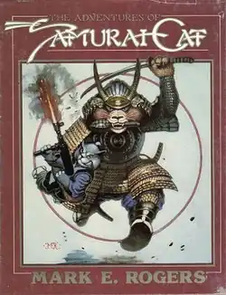 The Adventures of Samurai Cat is a collection of linked humorous fantasy short stories by Mark E. Rogers. Rogers had done a series of paintings and drawings which feature his character Samurai Cat and spoofing martial arts films and fantasy stories. He went on to write stories to fit the paintings. The collection was first published in 1984 by Donald M. Grant, Publisher, Inc. in an edition of 2,225 copies, of which 425 were issued as a deluxe edition, and were slipcased, signed and numbered.