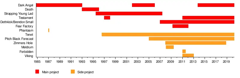 | Formerly of | Old Man's Child, Testament, Death, Devin Townsend, Strapping Young Lad, Fear Factory, Meldrum, Forbidden, Viking, Zimmers Hole |