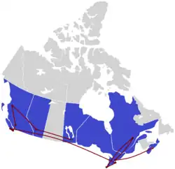 The Amazing Race Canada 9 is the ninth season of The Amazing Race Canada, a Canadian reality competition show based on the American series The Amazing Race. Hosted by Jon Montgomery, it featured ten teams of two, each with a pre-existing relationship, in a race across Canada. The grand prize included a CA$250,000 cash payout powered by Samsung, a trip for two around the world, and two Chevrolet Colorado ZR2s.[1] This season visited six provinces and travelled over 12,000 kilometres (7,500 mi) during ten legs. Starting in Winnipeg, racers travelled through Manitoba, Alberta, British Columbia, Ontario, Quebec, and Nova Scotia before finishing in Halifax. New elements introduced in this season include the Assist, which allowed teams to only perform part of select tasks, and the Blind Double Pass, which allowed teams to use the Pass anonymously. The season premiered on CTV on July 4, 2023 and concluded on September 19, 2023.[2][3]