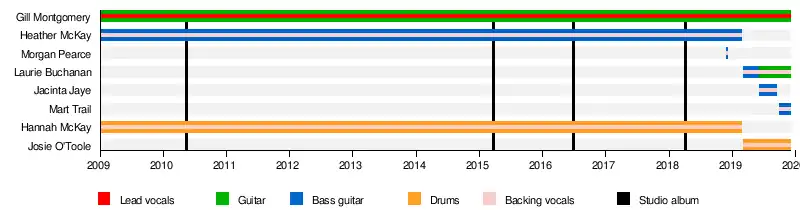 - Heather McKay – bass guitar, backing vocals (2009–2019)
