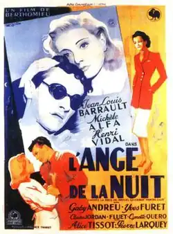The Angel of the Night (French: L'ange de la nuit) is a 1944 French drama film directed by André Berthomieu and starring Jean-Louis Barrault, Michèle Alfa and Henri Vidal.[1] The film's sets were designed by the art directors Lucien Aguettand and Raymond Nègre.
