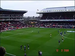 ![]() The North Bank stand of the stadium in 2005, a year prior to demolition | |