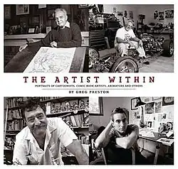 The Artist Within was first conceived when photographer Greg Preston's love of illustration & fantasy art and a suggestion from cartoonist Scott Shaw! fermented into Preston's project of photographing artists within their studios.[1] The 15 year long project brought together over 200 influential cartoonists, comic book artists, animators, and other fantasy illustrators into hard-bound book collection of black and white portraits of artists in their studios. Some of those featured include: Will Eisner, Carl Barks, Frank Miller, Al Hirschfeld, Chuck Jones, Joseph Barbera, Jack Kirby, Joe Simon, Moebius, Cathy Guisewite, Berke Breathed, R. Crumb, the Hernandez brothers, Alex Ross, Todd McFarlane, Walt and Louise Simonson, among many more.[1]
