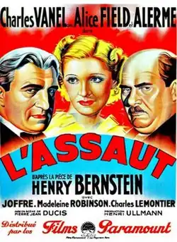 The Assault (French: L'assaut) is a 1936 French drama film directed by Pierre-Jean Ducis and starring Charles Vanel, Alice Field and Madeleine Robinson.[1] It is based on the 1912 play of the same title by Henri Bernstein.