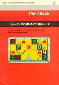 The Attack is a multidirectional shooter video game created, designed, and implemented by Jim Pettingell for the TI-99/4A home computer and published by Texas Instruments in 1981.[1] The game was developed at Milton Bradley as Alien Attack, inspired by the movies Alien (1979) and Barbarella (1968). After being sold to TI, the name was changed to The Attack.[2]