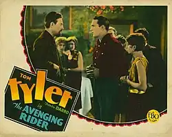 The Avenging Rider is a 1928 American silent Western film directed by Wallace Fox and starring Tom Tyler, Florence Allen and Frankie Darro.[1]