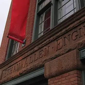 Front of The BCA Center. The inscription pays tribute to its history as the Ethan Allen Firehouse. | |