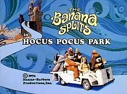 The Banana Splits in Hocus Pocus Park is a 1972 live-action/animated television film made by Hanna-Barbera featuring the characters from The Banana Splits television series.[1] Mixing live action sequences shot at Kings Island amusement park in Cincinnati, Ohio, with animation, the film follows the Banana Splits as they attempt to rescue a young girl who is kidnapped by a power-hungry witch.[2]
