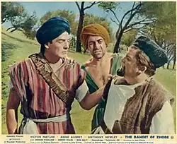The Bandit of Zhobe is a 1959 British CinemaScope adventure film directed by John Gilling and starring Victor Mature, Anne Aubrey and Anthony Newley.[2] It was written by Gilling and Richard Maibaum. In British India a bandit goes on a rampage in the mistaken belief that the British have killed his family, which later proves to not be the case. It was produced by Albert Broccoli for Warwick Films and features extensive use of footage from Gilling's previous Zarak (1956).