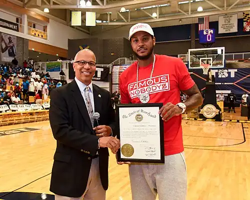 - ^ Walker, Childs (August 2, 2017). "Carmelo Anthony returns home to Baltimore 'at peace' with himself". The Baltimore Sun. Retrieved July 28, 2018.