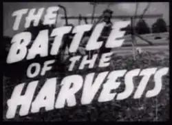 The Battle of the Harvests (aka Battle of the Harvests) is an 18-minute 1942 Canadian documentary film, made by the National Film Board of Canada (NFB) as part of the wartime Canada Carries On series. The film was produced by James Beveridge and directed by Stanley Jackson, who also provided the narration.[1] The Battle of the Harvests shows how the farmers were mobilized worldwide in a battle on the farmland to serve the fighting nations during the Second World War. The film's French version title was La Bataille des récoltes.