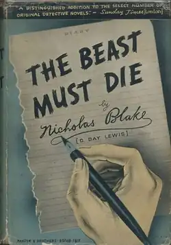 The Beast Must Die is a 1938 detective novel by Cecil Day-Lewis, written under the pen name of Nicholas Blake. It combines elements of the inverted thriller with a classic Golden Age-style investigation. It is the fourth in a series of novels featuring the private detective Nigel Strangeways.[1] The title is inspired by a line in Four Serious Songs by Johannes Brahms, itself a reference to Ecclesiastes.