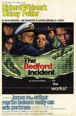 The Bedford Incident is a 1965 British-American Cold War film starring Richard Widmark and Sidney Poitier, with James MacArthur, Martin Balsam, Wally Cox, and Eric Portman in support. It was directed by James B. Harris, and produced by Harris and Widmark, adapted from a 1963 novel of the same name by Mark Rascovich,[1] which borrowed from the plot of Herman Melville's Moby-Dick.[2]