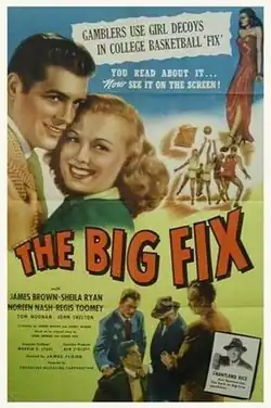 The Big Fix is a 1947 American crime drama film starring James Brown, Sheila Ryan, Noreen Nash, and Regis Toomey. Directed by James Flood, the story concerns the efforts of a crooked gambling ring to fix college basketball games. This film was the final production of Producers Releasing Corporation.