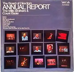 The Board of Directors Annual Report is an album by vocal group The Mills Brothers with pianist and bandleader Count Basie and His Orchestra featuring performances recorded in 1968 and released on the Dot label.[1][2] The album follows Basie's 1967 collaboration with The Mills Brothers The Board of Directors.