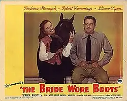 The Bride Wore Boots is a 1946 American romantic comedy film with Barbara Stanwyck in the title role, playing opposite Robert Cummings. A very young Natalie Wood is seen in the film, directed by Irving Pichel.[1]