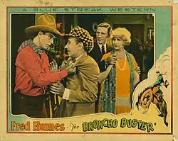 The Broncho Buster is a 1927 American silent Western film directed by Ernst Laemmle and starring Fred Humes, Gloria Grey and Buck Connors.[1]