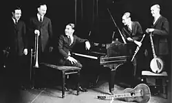 The Bucktown Five was a jazz group active in the early 1920s in the Chicago area of the United States. The group played a New Orleans style of collective improvisational jazz and were forerunners of the Chicago style which developed in later years. About eighteen months after breaking up, many of the same players recorded in Chicago as the Stomp Six. The Bucktown Five also recorded with Bix Beiderbecke.