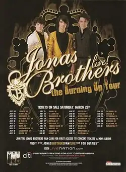 - ^ "Jonas Brothers Announce Summer Dates for 'The Burning up Tour'". March 19, 2008.