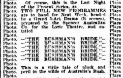 - ^ ""The Bushmn's Bride"". Maitland Daily Mercury. NSW. 27 December 1924. p. 2. Retrieved 24 May 2015 – via National Library of Australia.