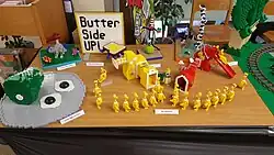 An article in the July 27, 1984, issue of the conservative magazine National Review found it plausible that the book was not more popular because of Seuss' promotion of a theme of "moral equivalence", where the difference between the Soviet Union and the United States was equivalent to a disagreement over the proper side on which to butter bread.[7][2] On the other hand, Roger S. Clark, a professor at Rutgers University School of Law, argued in an article in the New York Law School Law Review that The Butter Battle Book stood out to him when it first came out because of its timing and context. Further, he noted the fact that Dr. Seuss portrayed an arms race during the time period in which the book was published made Seuss's intentions clear.[8]