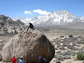 ![]() Bouldering at the Buttermilks with Basin Mountain in the background | |