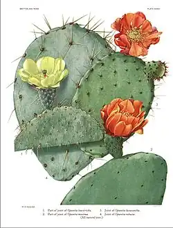 The Cactaceae is a monograph on plants of the cactus family written by the American botanists Nathaniel Lord Britton and Joseph Nelson Rose and published in multiple volumes between 1919 and 1923. It was landmark study that extensively reorganized cactus taxonomy and is still considered a cornerstone of the field.[1] It was illustrated with drawings and color plates principally by the British botanical artist Mary Emily Eaton as well as with black-and-white photographs.